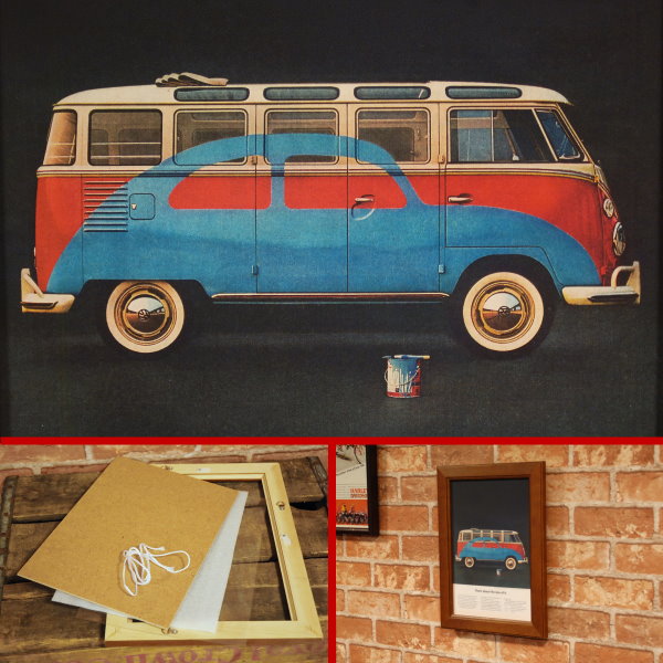 【復刻ポスターとB5フレームセット】 VW ワーゲンバス 1963 ビートル 塗り