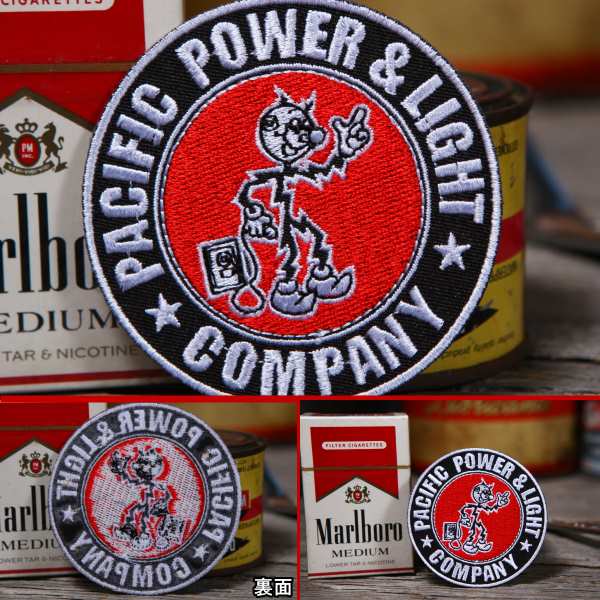 アイロンで貼り付けるタイプのワッペンです。電力会社のキャラクターが刺繍されています。