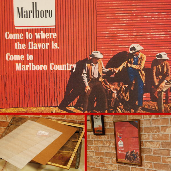 復刻ポスター B4フレーム付き ◆ Marlboro マルボロ 厩舎 休憩中 タバコ 1965