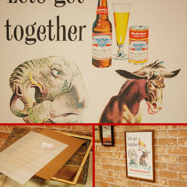 復刻ポスター B4フレーム付き ◆ バドワイザー 1952 象 馬