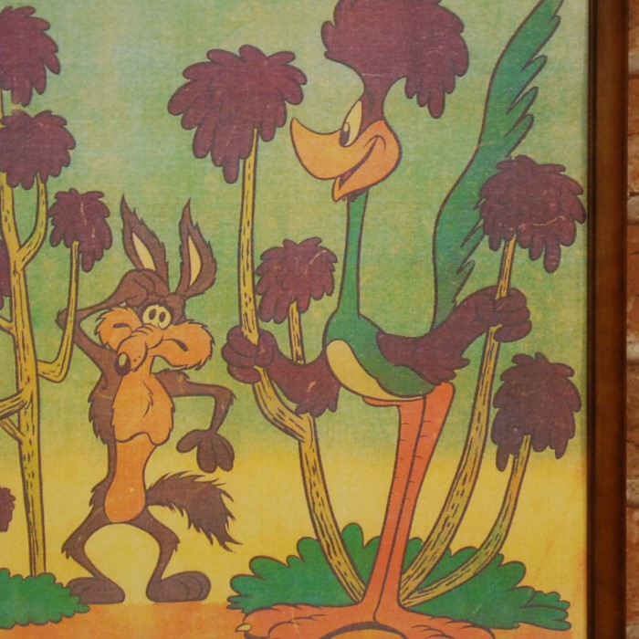 ロードランナーとその宿敵ワイリーコヨーテの広告と木製フレームのセットです。