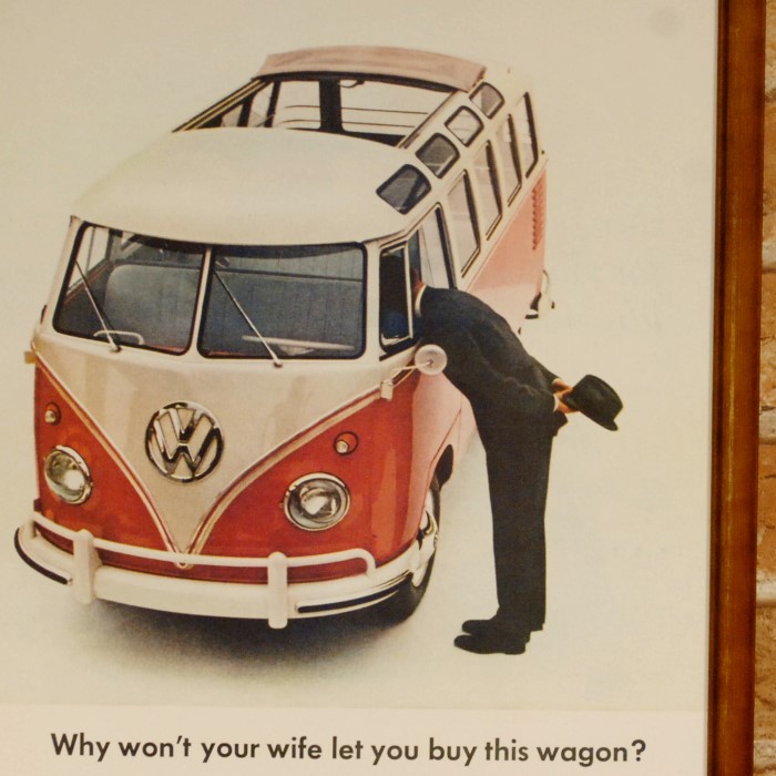 復刻ポスター B4フレーム付き ◆ VW ワーゲンバス タイプ2 覗き込む人 1961