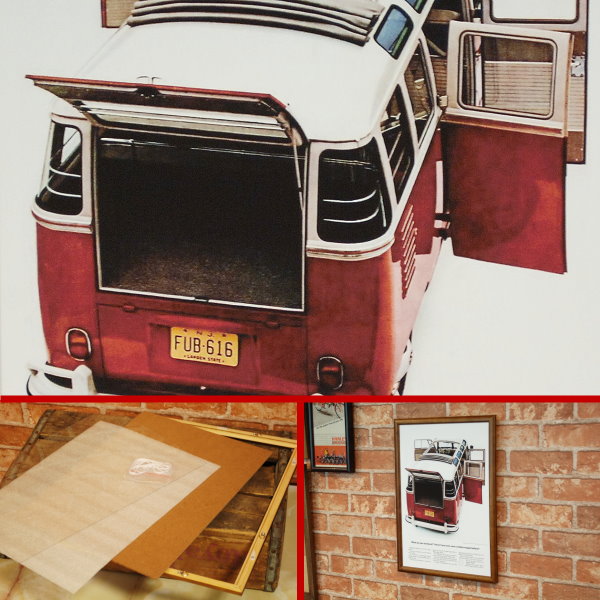復刻ポスター B4フレーム付き ◆ VW ワーゲンバス 1962 タイプ2 ブリ リヤハッチ