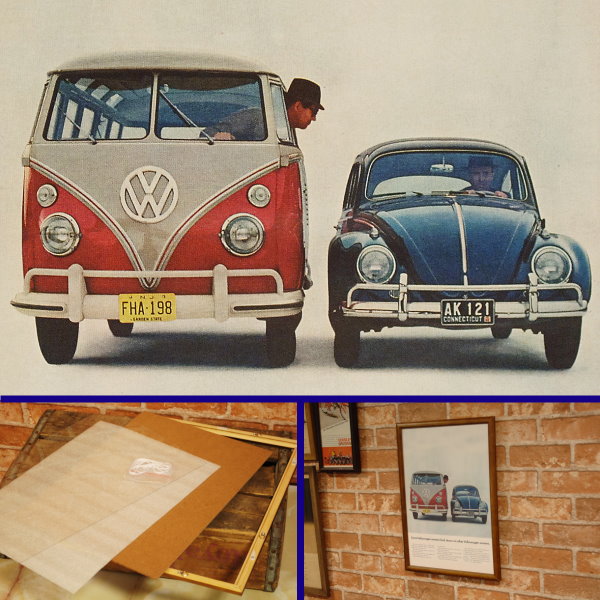 復刻ポスター B4フレーム付き ◆ VW ワーゲンバスとビートル 1963