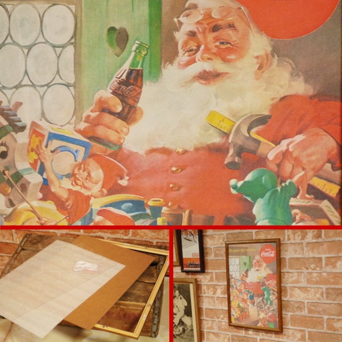 復刻ポスター B4フレーム付き ◆ コカコーラ サンタと準備中の小人 クリスマス