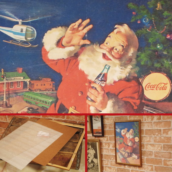 復刻ポスター B4フレーム付き ◆ コカコーラ サンタとおもちゃ達 クリスマス