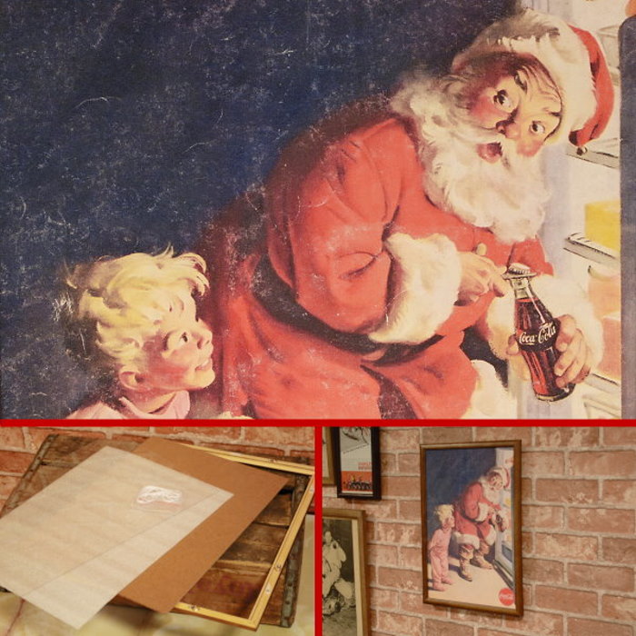 復刻ポスター B4フレーム付き ◆ コカコーラ サンタと男の子 クリスマス