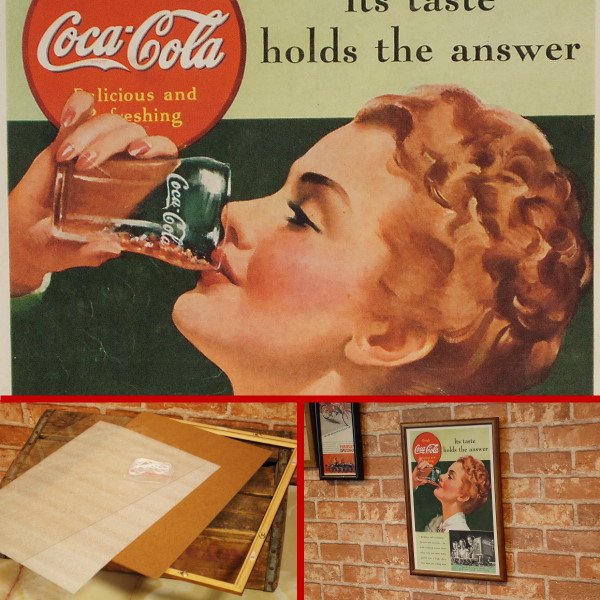 復刻ポスター B4フレーム付き ◆ コカコーラ グラスと女性