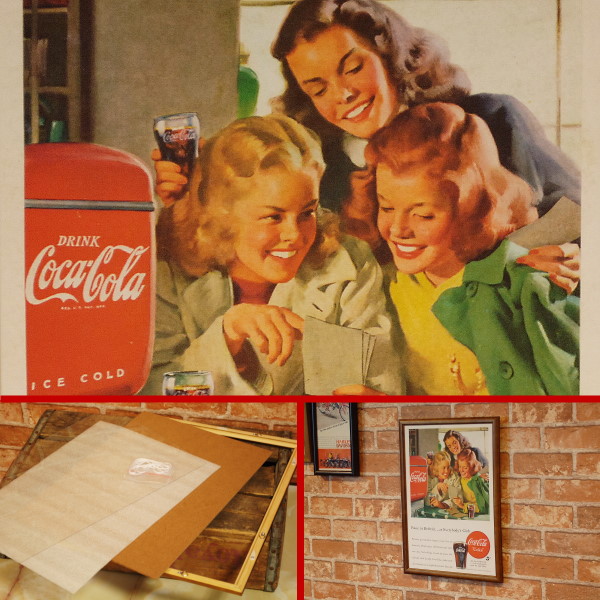 コカコーラの広告のリプリントとフレームのセットです。