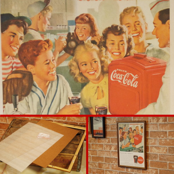 コカコーラの広告のリプリントとフレームのセットです。