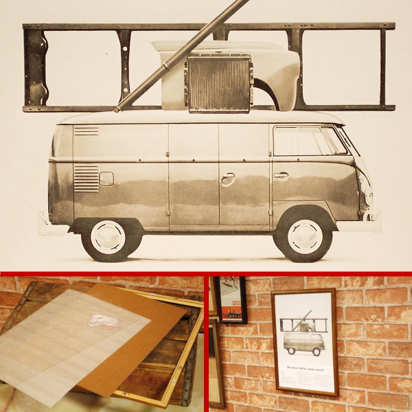 復刻ポスター B4フレーム付き ◆ VW ワーゲンバス 1962 タイプ2