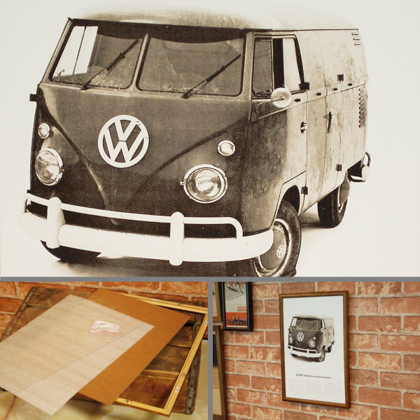 復刻ポスター B4フレーム付き ◆ VW ワーゲンバス 1962 サンバーバス