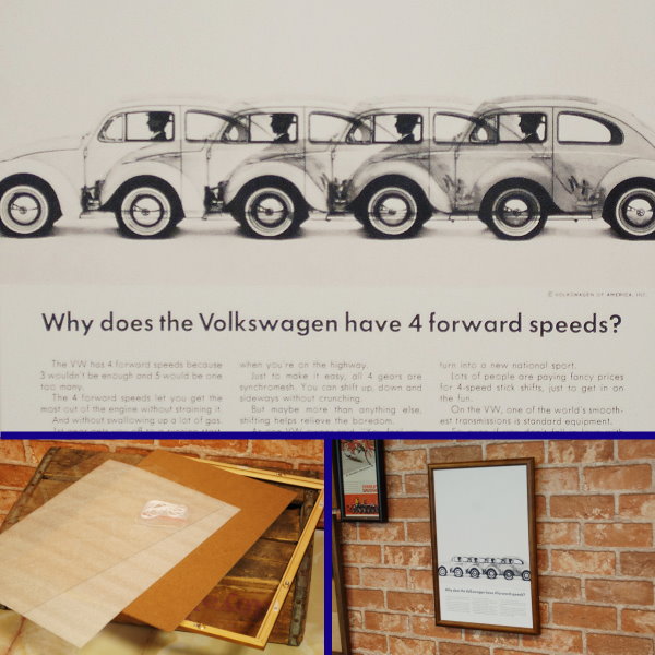 復刻ポスター B4フレーム付き ◆ VW ワーゲン 4ギア ビートル 1962
