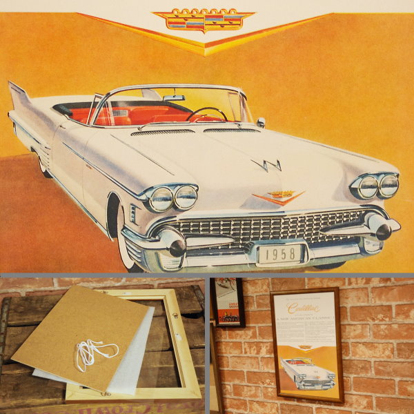 復刻ポスター B4フレーム付き ◆ キャデラック オープンカー 1958
