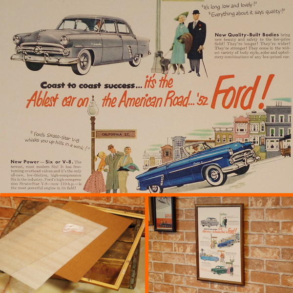 復刻ポスター B4フレーム付き ◆ Ford フォード アメリカンロード '52