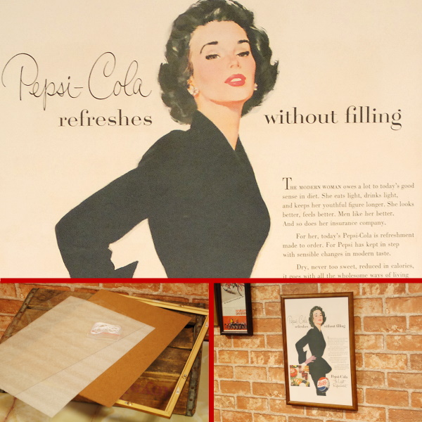 復刻ポスター B4フレーム付き ◆ Pepsi-cola ペプシ王冠と女性