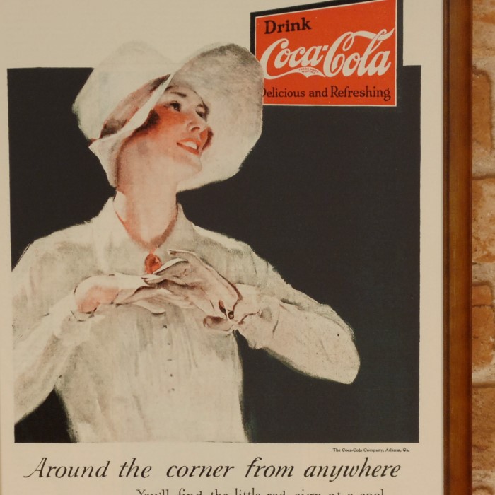 復刻ポスター B4フレーム付き ◆ コカコーラ 白い帽子の女性
