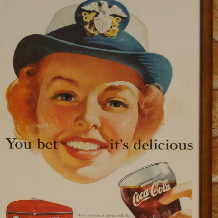 復刻ポスター B4フレーム付き ◆ コカコーラ 軍人女性イラスト
