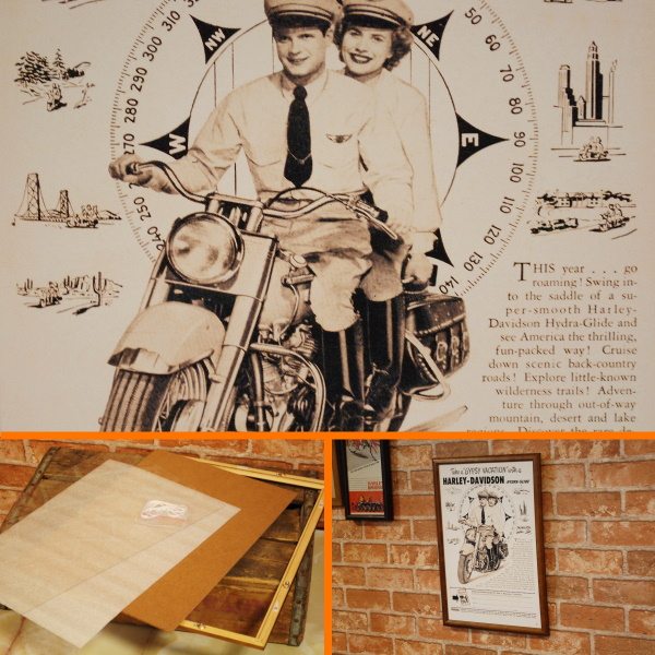 Harley Davidson Art Print & Frames☆実際に掲載された事のある、広告リプリントとフレームのセットです。