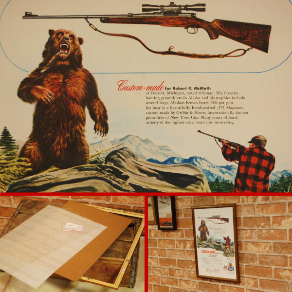 復刻ポスター B4フレーム付き ◆ テキサコ モーターオイル 銃 熊 TEXACO