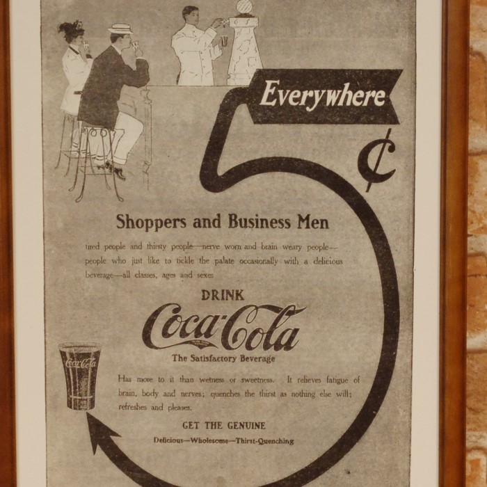 復刻ポスター B4フレーム付き ◆ コカコーラ どこでも5セント