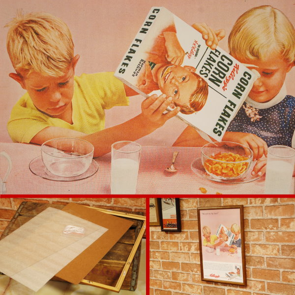 復刻ポスター B4フレーム付き ◆ ケロッグ コーンフレーク 1955 兄弟