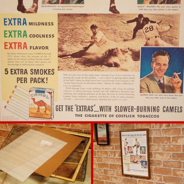 復刻ポスター B4フレーム付き ◆ CAMEL キャメル 1940 タバコ 野球