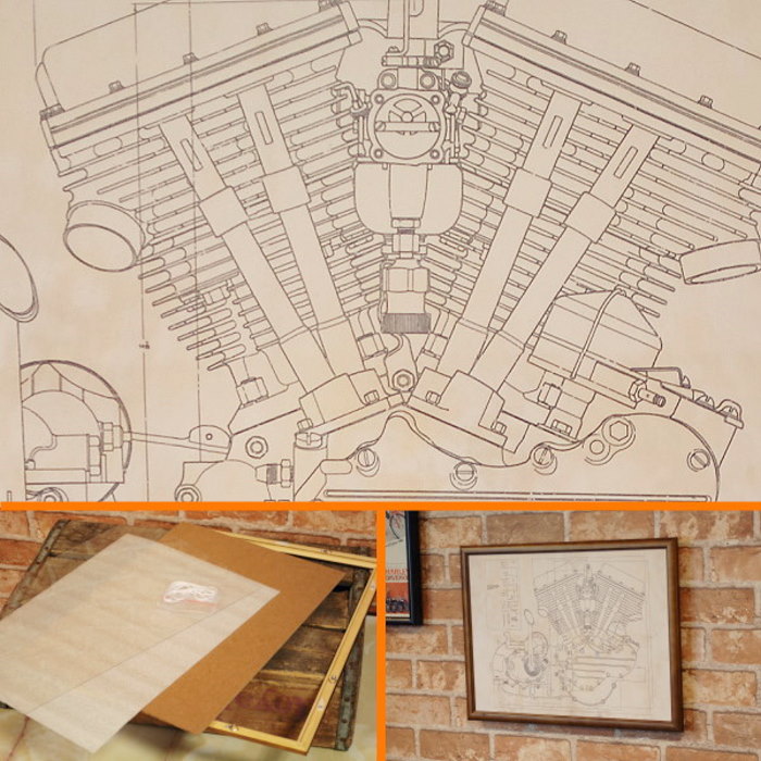 復刻ポスター B4フレーム入 ◆ ハーレー パンヘッドエンジン 設計図