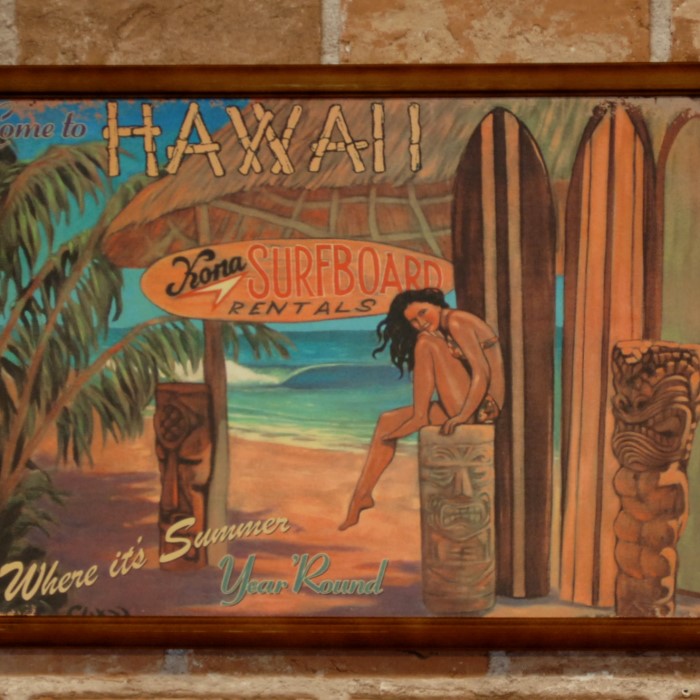 復刻ポスター B4フレーム付き ◆ ハワイ サーフボードショップ