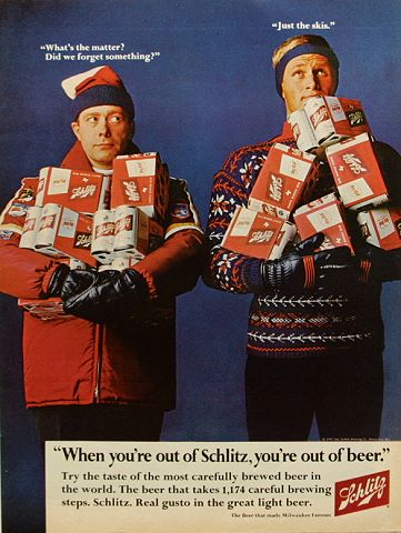 アメリカ雑誌に掲載されたSCHLITZの広告です。【サイズ約:縦 34cm×横 25cm】 シュリッツ・アルコール・ライトビール