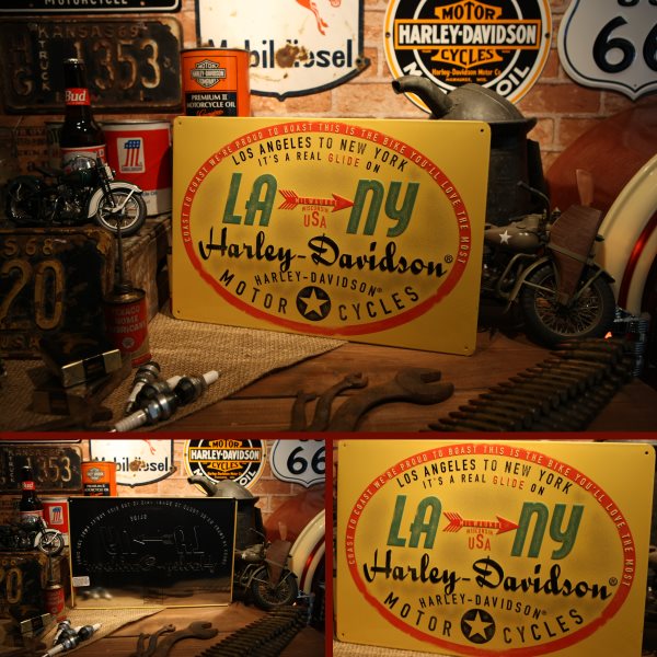 HARLEY ブリキ看板 “LA to NY” ◆ ハーレー雑貨 USA H2010261