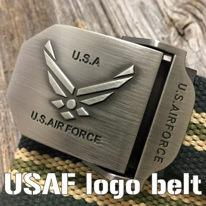 USAF 羽ロゴ バックル GI ベルト ◆ エアフォース ガチャベルト 【カーキ&ライン】