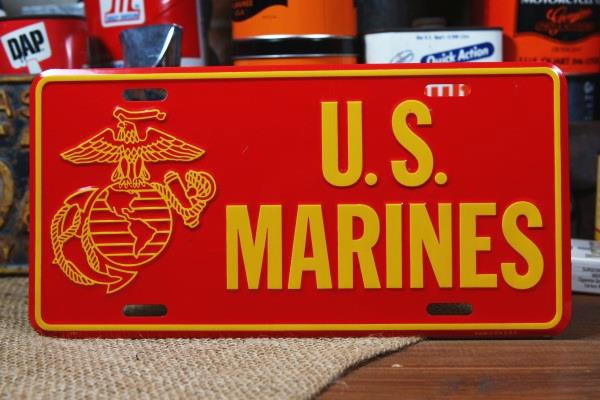 アメリカ海兵隊 ロゴ プレート ◆ U.S. MARINES 赤地