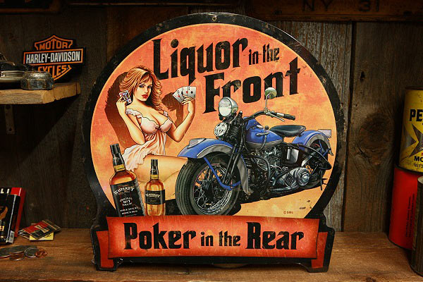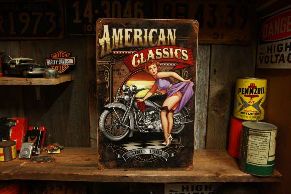 バイク と ピンナップガール イラスト 看板 ◆ ハーレー 1903