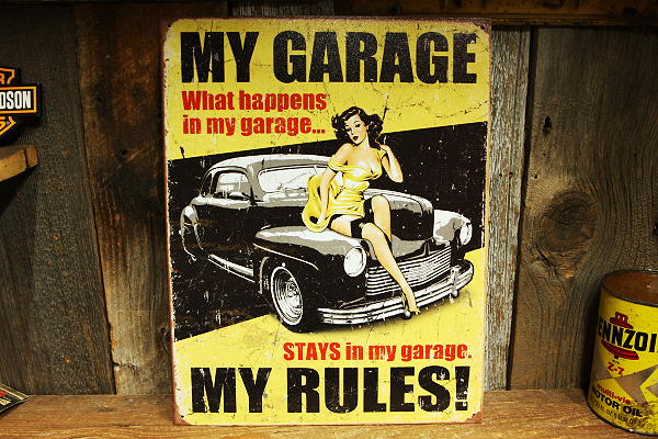 MY GARAGE MY RULES オールド加工 看板 ◆ セクシーガール