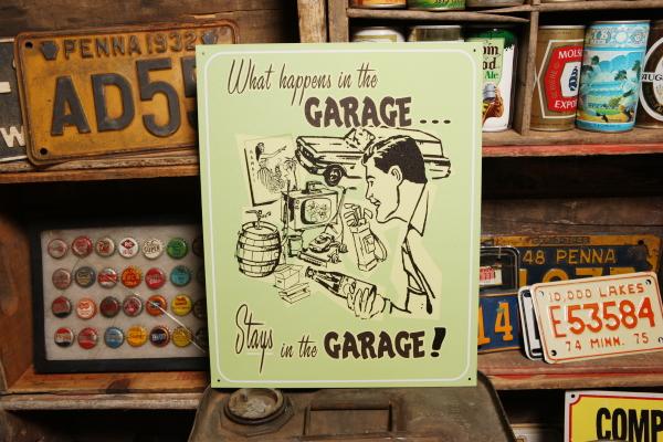 What happens in the GARAGE... ブリキ看板 ◆ Staus