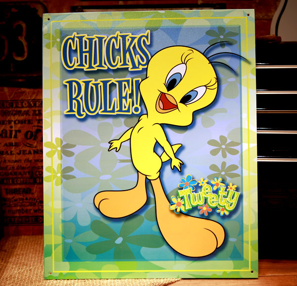 トゥイーティー CHICKS RULE ブリキ看板 ◆ TWEETY 鳥