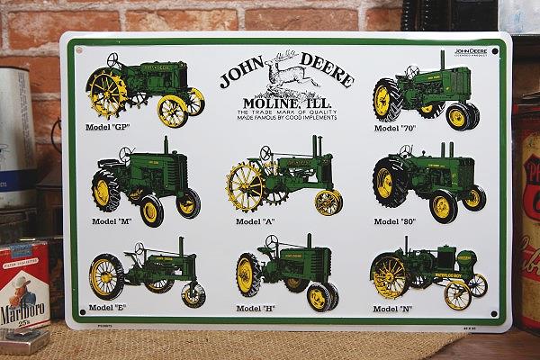 John Deere 8種類のトラクター 大型 サイン プレート ◆ イラスト