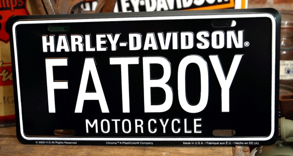 ハーレー 黒地に白文字 FATBOY 看板 ◆ ファットボーイ
