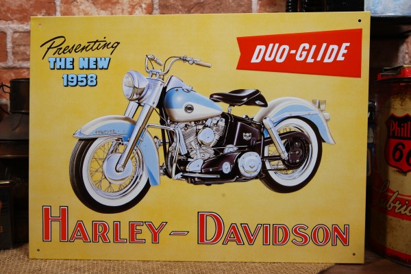 ハーレー デュオグライド イラスト看板 ◆ プレート 1958年式 Harley FLH F3-T60