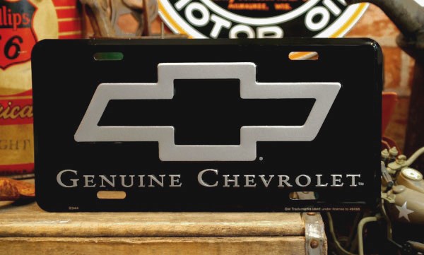 CHEVROLET ボウタイ ロゴ 看板 ◆ GENUINE 黒地