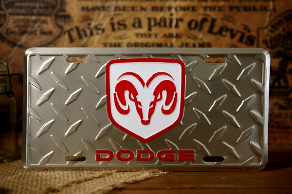 DODGE ヒツジロゴ 縞鋼板風 プレート ◆ ダッジ ダッヂ