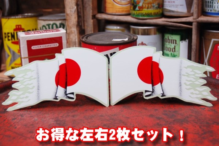 たなびく 日の丸 大きめ ステッカー 左右組 ◆ ニッポン