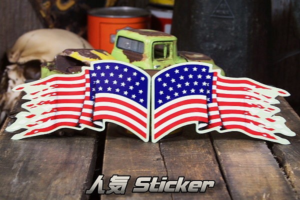 たなびく星条旗 大きめ ステッカー ◆ 左右組 アメリカ