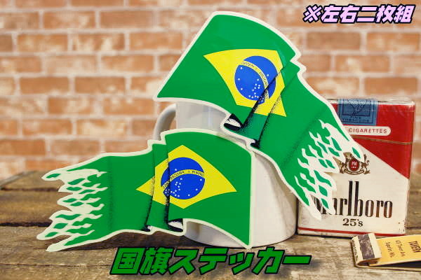 たなびく国旗 大きめ ステッカー 左右組 ◆ ブラジル