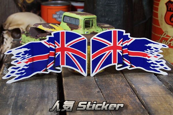 たなびく 英国旗 ステッカー 左右組 ◆ イギリス 【小】