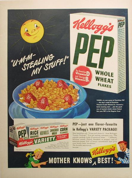1949年 雑誌掲載広告 kellogg'ss PEP whole wheat flakes