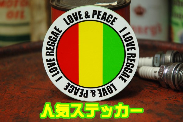 ラブ&ピース アイ ラブ レゲエ 丸型 ステッカー ◆ REGGAE