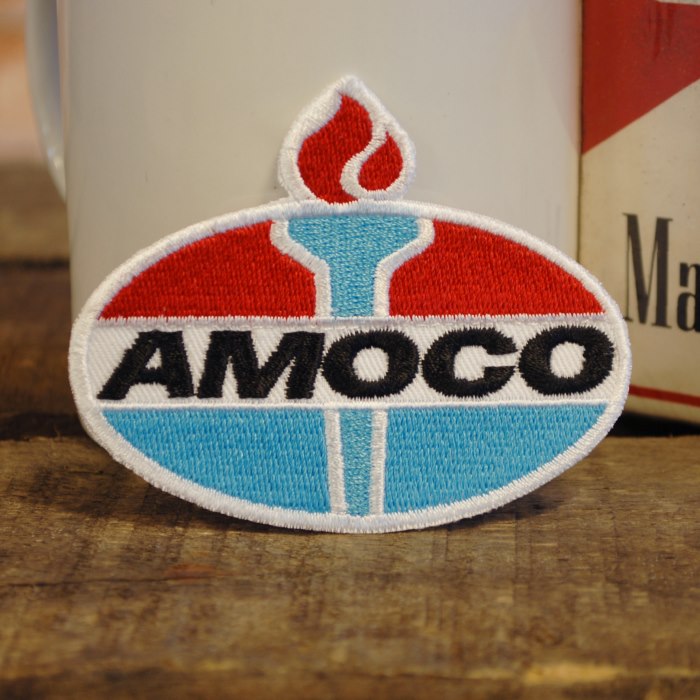 AMOCO ロゴ 刺繍 ワッペン ◆ アモコ 燃料ブランド ガソリンスタンド アイロン接着対応