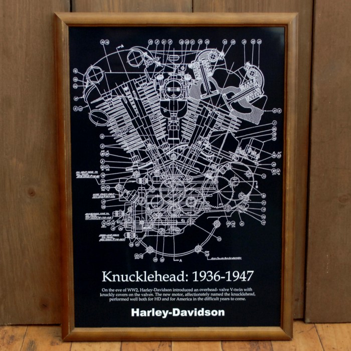 ハーレー ナックルヘッド エンジン アートポスター B4木製フレーム入り ◆ パーツリスト 図面 FB-402